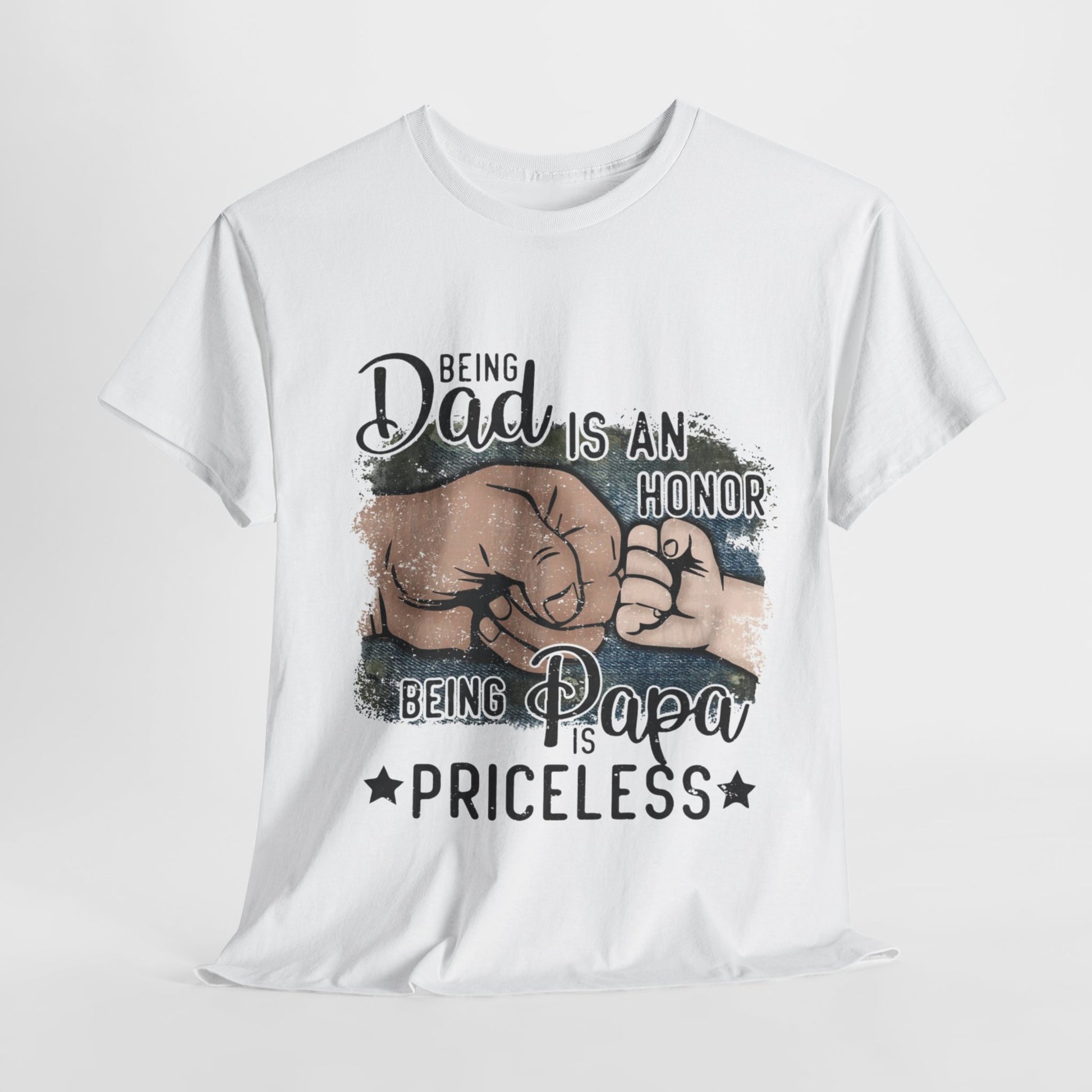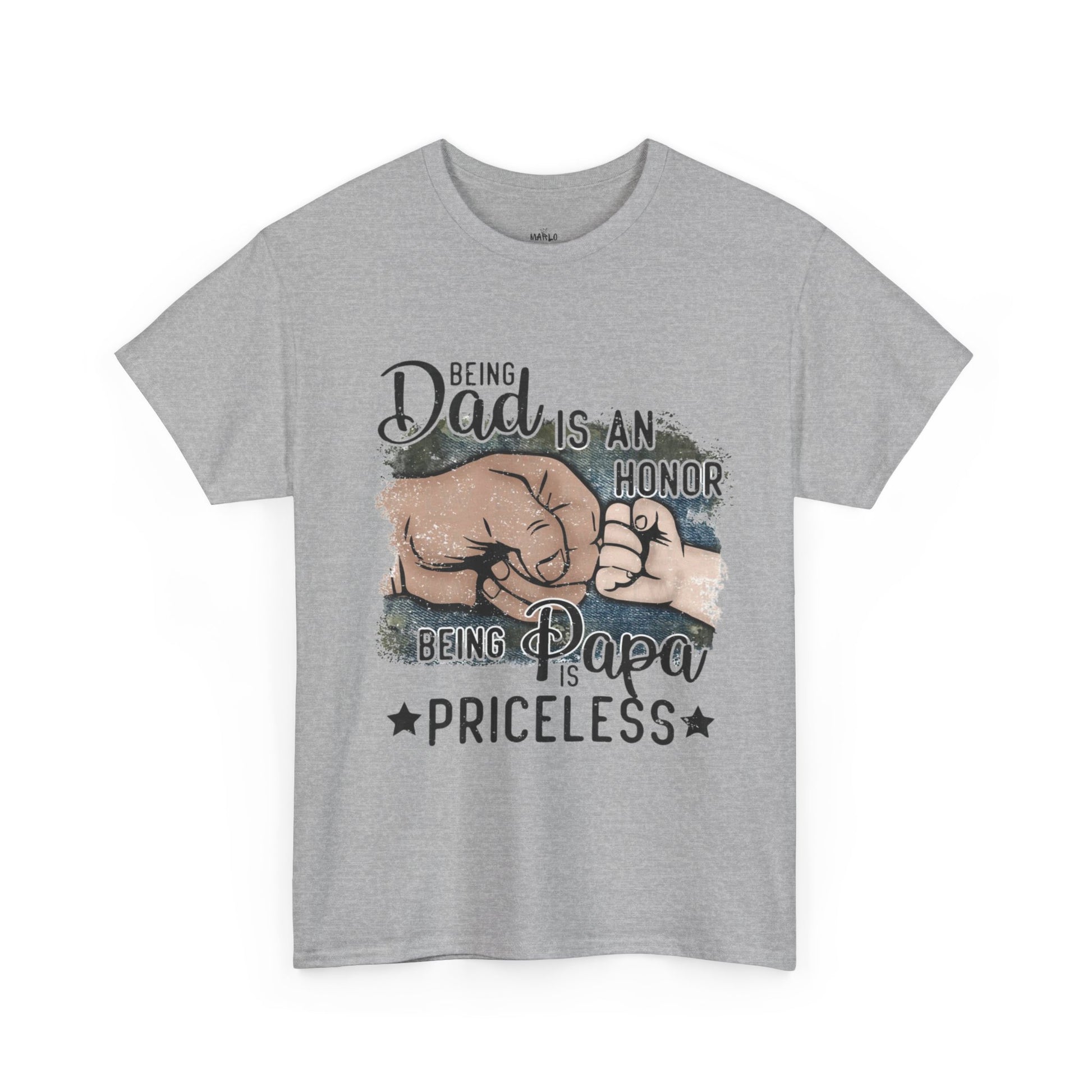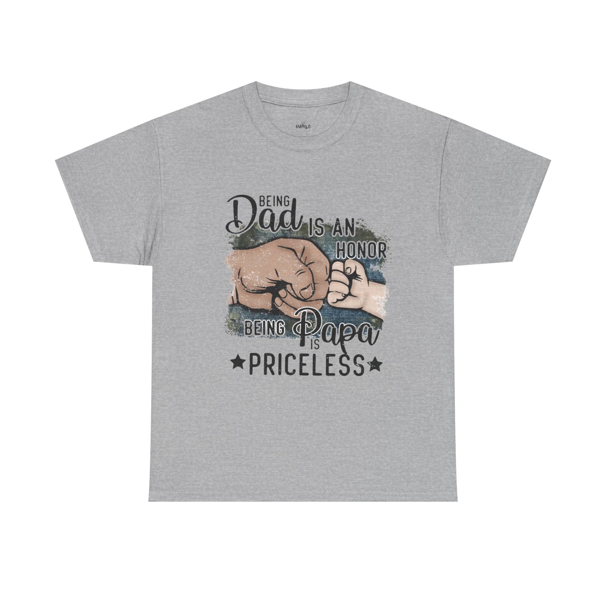 This Unisex Heavy Cotton Tee is perfect for anyone looking to express their pride in fatherhood. With a heartfelt design that says, 'Being Dad is an Honor, Being Papa is Priceless,' this shirt radiates warmth and love. Its casual yet classic fit makes it suitable for every occasion, whether it's a family gathering, casual day out, or a laid-back evening at home. Ideal for Father's Day, birthdays, or simply to show appreciation for the dads and grandpas in your life. Comfortable and durable, it's a wonderful addition to any dad's wardrobe, making it the perfect gift for those who cherish family moments.