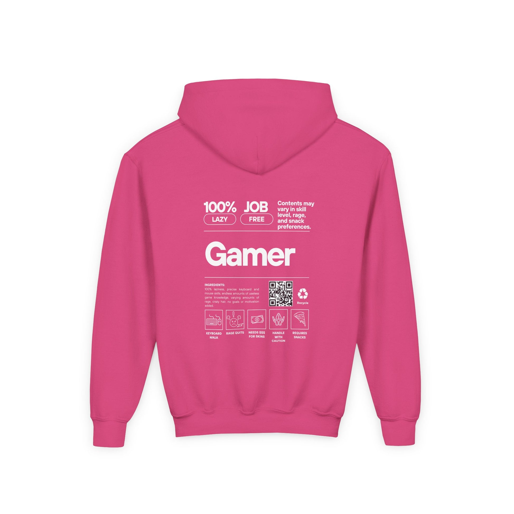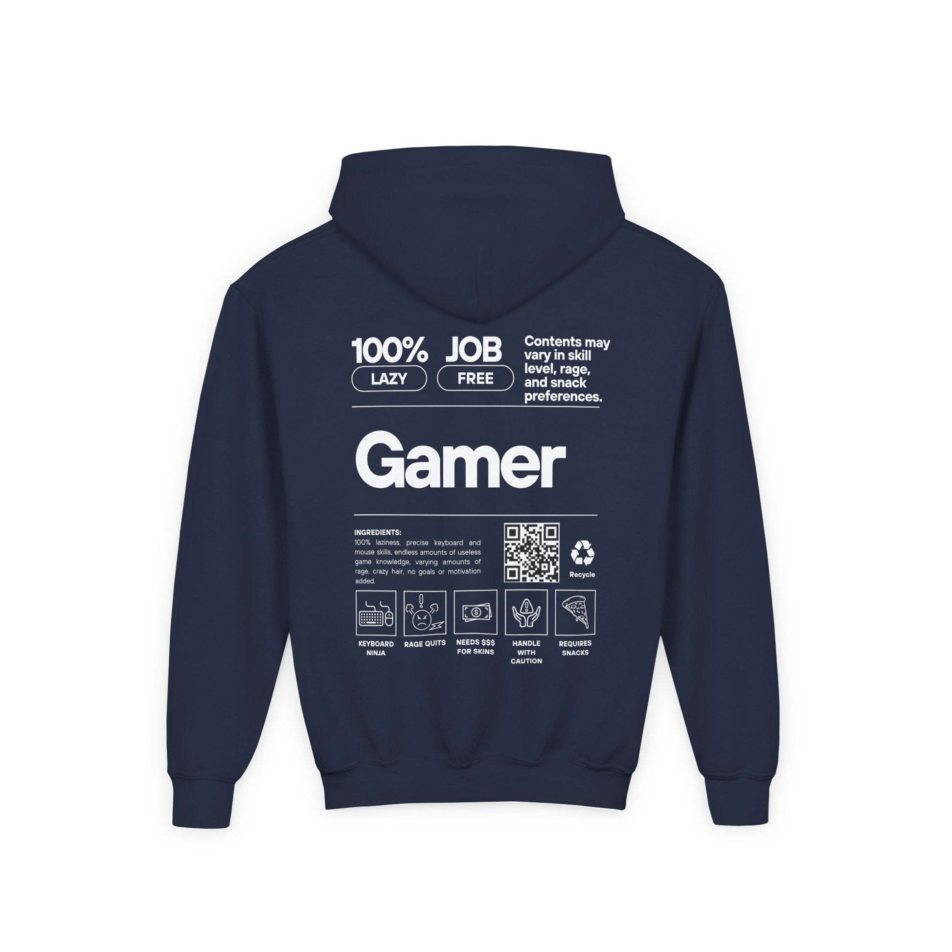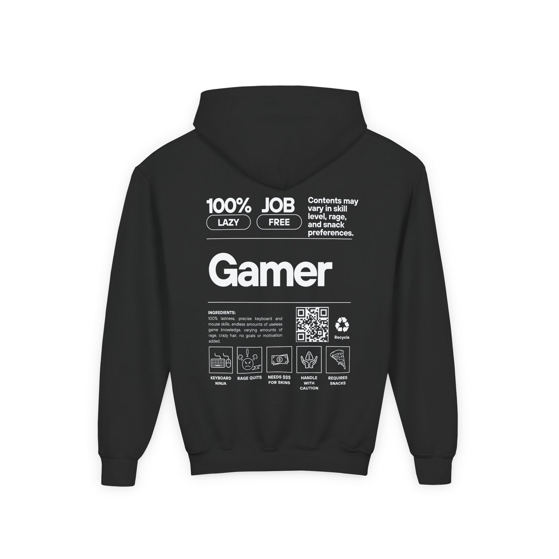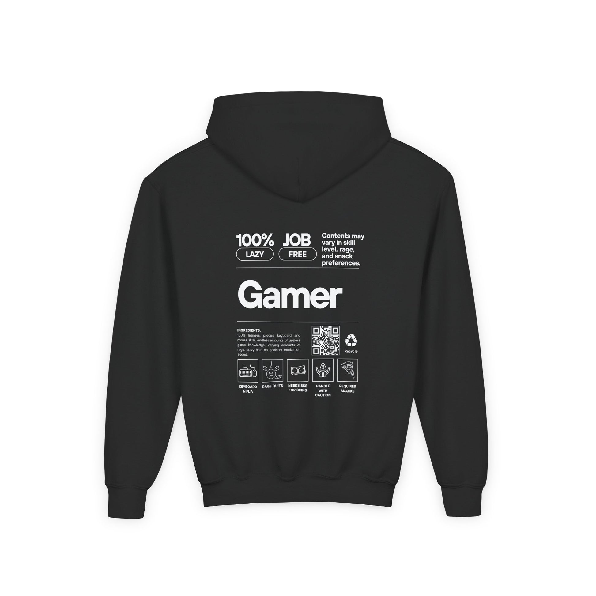Youth Gamer Hoodie | Funny Gamer Youth Sweatshirt | Gamer Ingredients | Gamer Nutritional Facts | Esports Hoodie