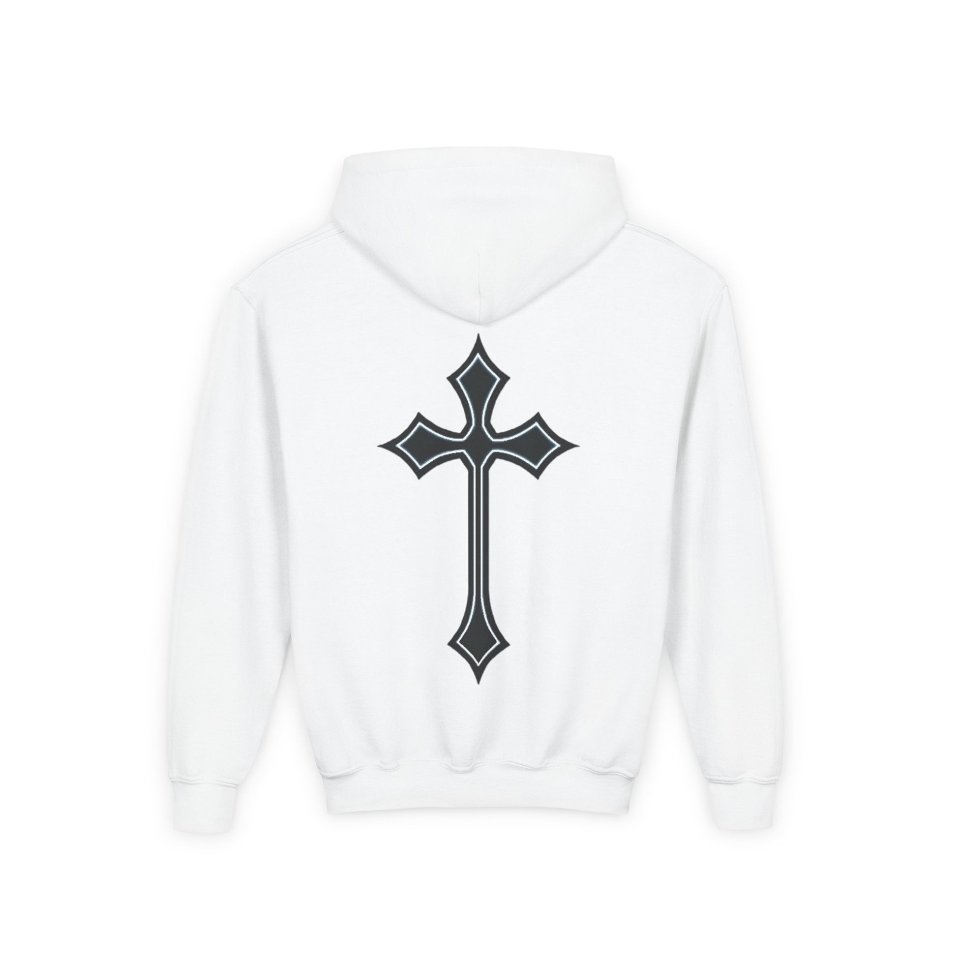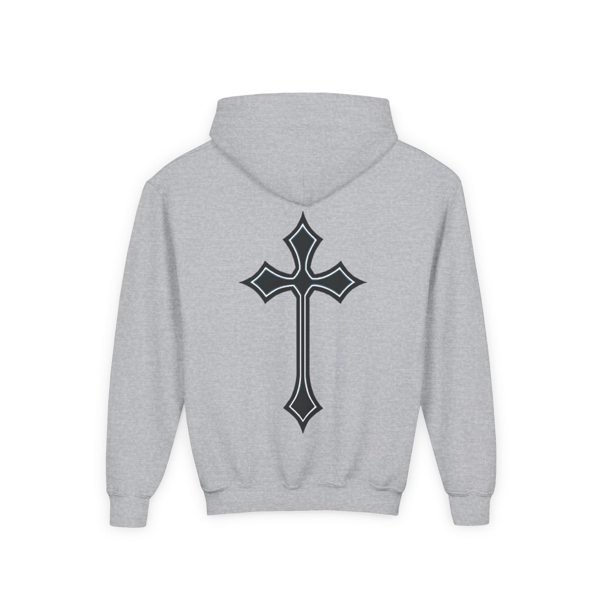 Youth Heavy Blend Hooded Sweatshirt with Cross Design